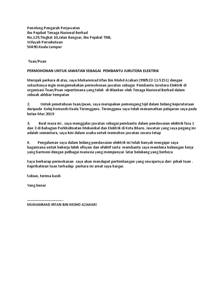 Contoh Permohonan Kerja / Contoh Surat Rasmi Permohonan Kerja Kerajaan Terkini